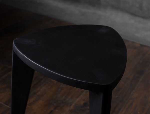 Sumi - Sgabello in legno nero - Seduta minimalista triangolare bruciata - Mobili decorativi moderni fatti a mano, sgabello laterale in legno massello, Japandi Interior